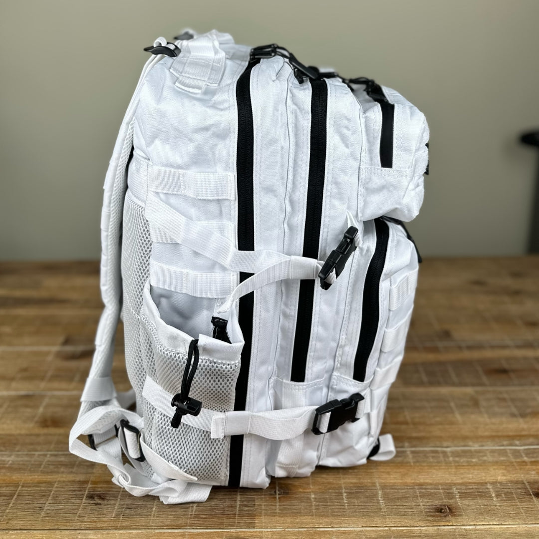The ALPHA Tactical Backpack is a versatile and durable gear companion designed to excel in both outdoor adventures and everyday use. With a generous 45-liter capacity, this backpack provides ample space for all your essentials, whether you're embarking on a 3-day assault or hitting the gym for an intense workout.