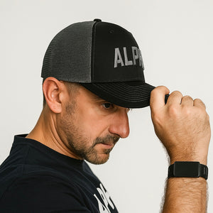 Top off your look with the ALPHA Trucker Cap - built for performance and style. Made with a durable polyester/cotton blend, this 6-panel cap features breathable mesh backing to keep you cool and an adjustable closure for a custom fit (56–60cm). Whether you’re training, traveling, or just out in the wild, this cap brings the grit and confidence of ALPHA to every move. Details: Polyester/cotton construction Breathable mesh back panels 6-panel structured design Adjustable snap closure (56–60cm) Bold ALPHA...